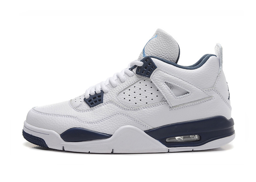 Nike Air Jordan 4 Retro White/Blue, синие с белым, кожа, мужские Размер 40