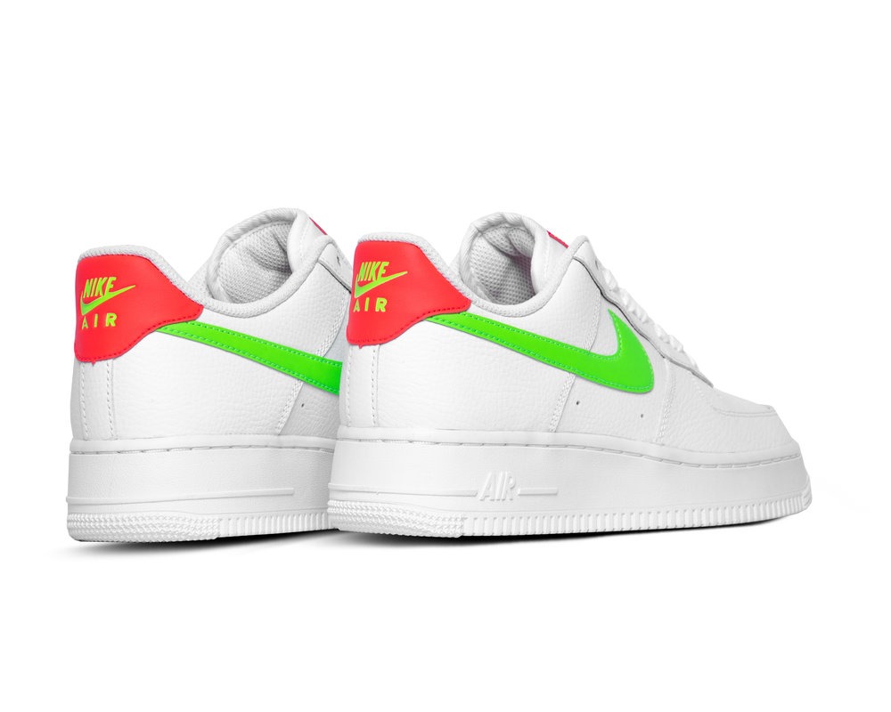 Nike Air Force 1 ’07 Laser Crimson Green Strike белые с зеленым кожаные женские