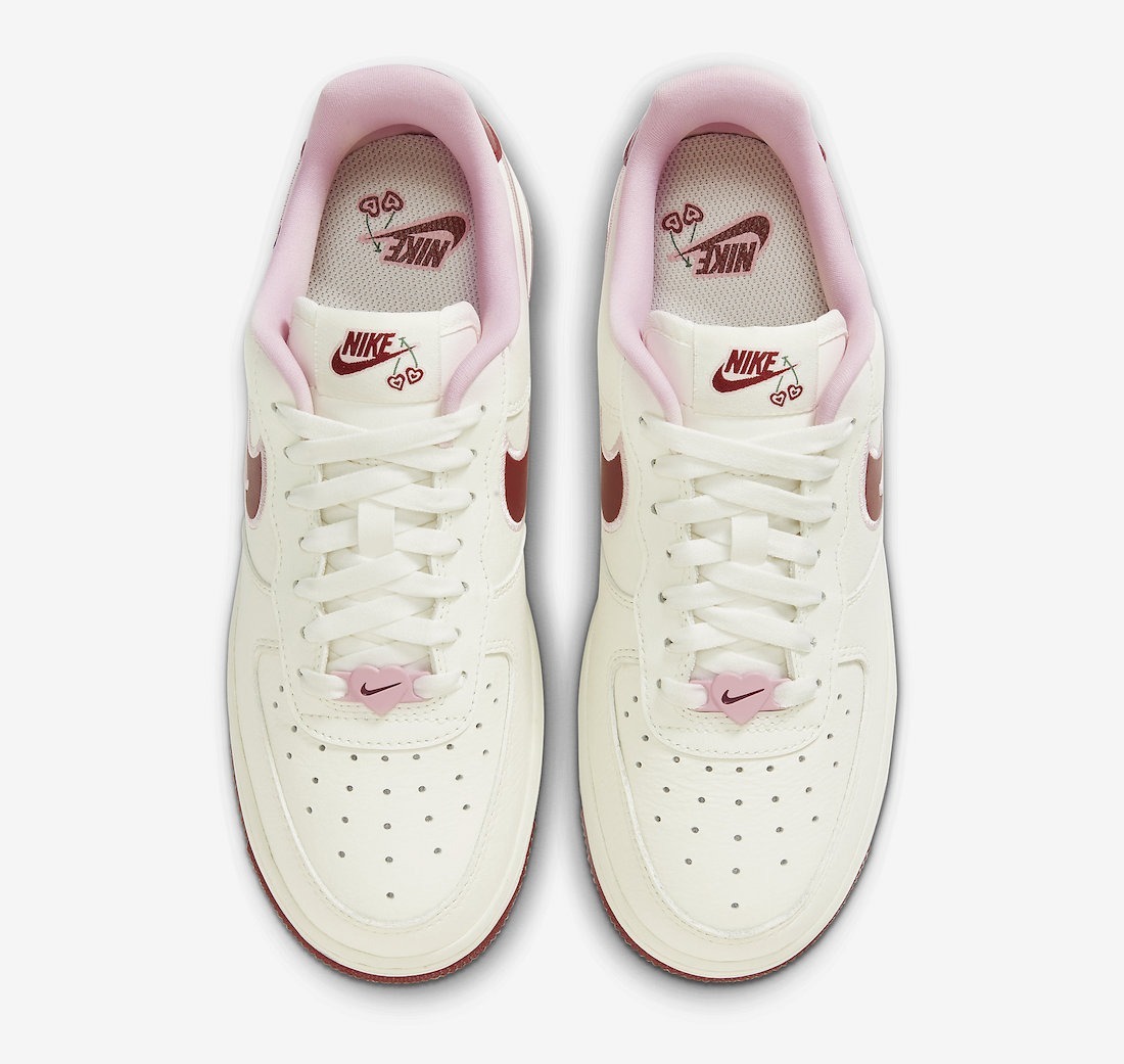 Nike Air Force 1 Low Valentines Day 2023 белые с бордовым, женские
