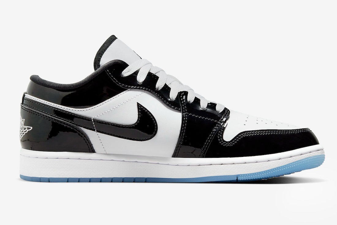 Nike Air Jordan 1 Low SE GS ‘Concord’, белые с черным, кожа, лакированные, мужские Размер 44