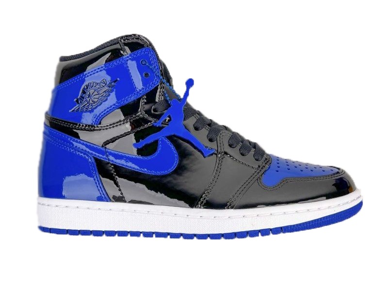 Nike Air Jordan 1 Retro High OG, черные с синим, лакированная кожа, мужские