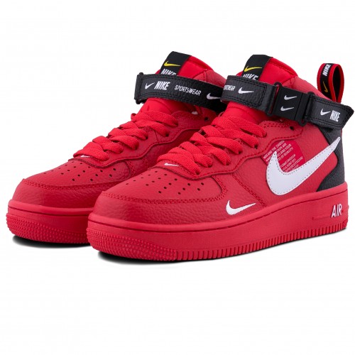 Nike Air Force 1 Mid 07 LV8 Red, зимние с мехом Красные, кожаные, мужские, женские Размер 45